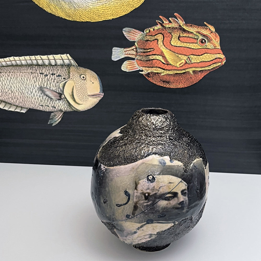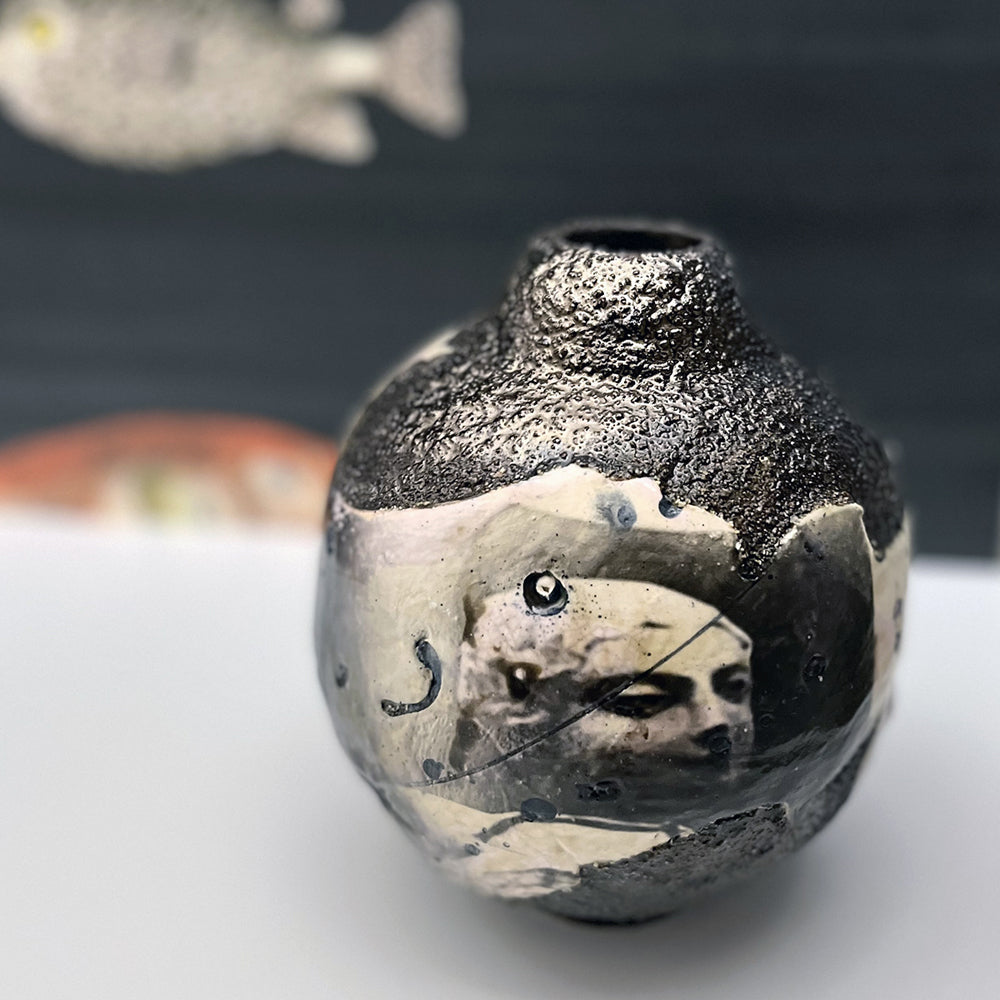 All the vessels have been handmade and, due to the making technique, each piece is unique. Working in a variety of traditional media such as ceramics, printmaking, analogue photography, and collage works; these delicately crafted ceramic objects are purely decorative, non-functional ware.