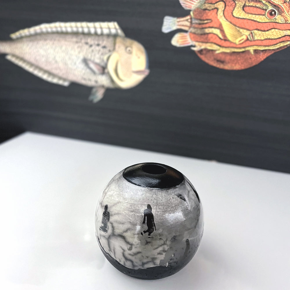 All the vessels have been handmade and, due to the making technique, each piece is unique. Working in a variety of traditional media such as ceramics, printmaking, analogue photography, and collage works; these delicately crafted ceramic objects are purely decorative, non-functional ware.